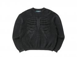BRIGADE Acid Wash Bones 3D Knit Sweater BLACK