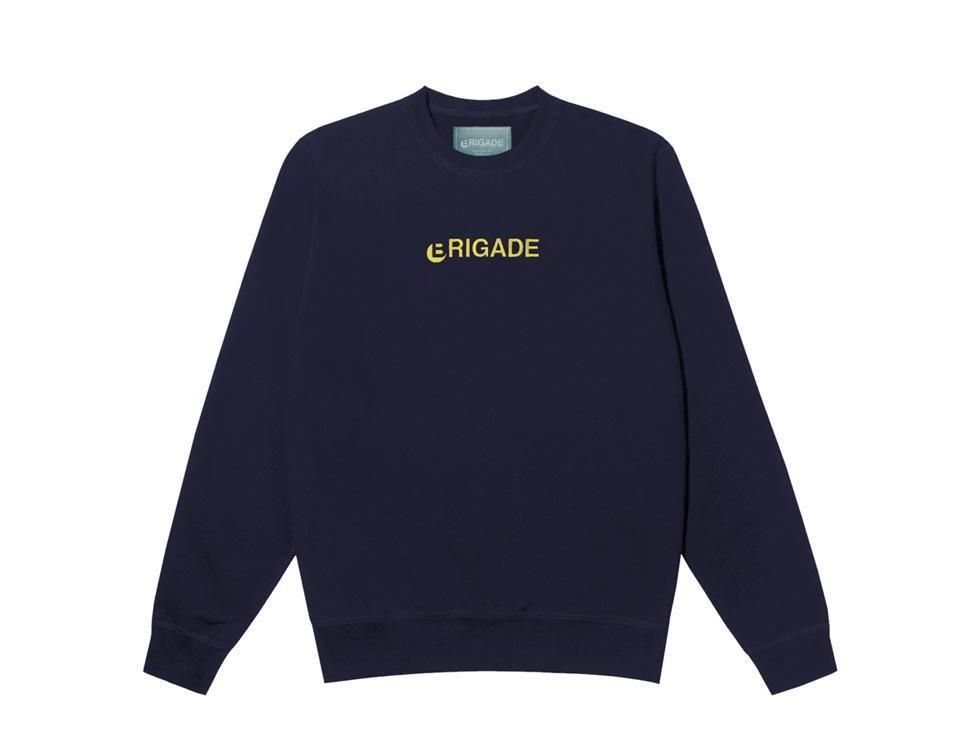 フロントに刺繍の入ったクルーネックスウェットシャツ。