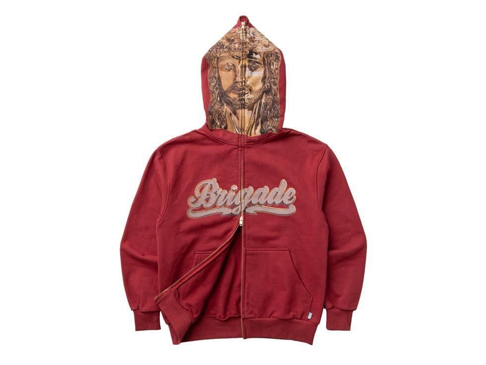 BRIGADE Jesus Piece Full Zip Hoodie BURGUNDY