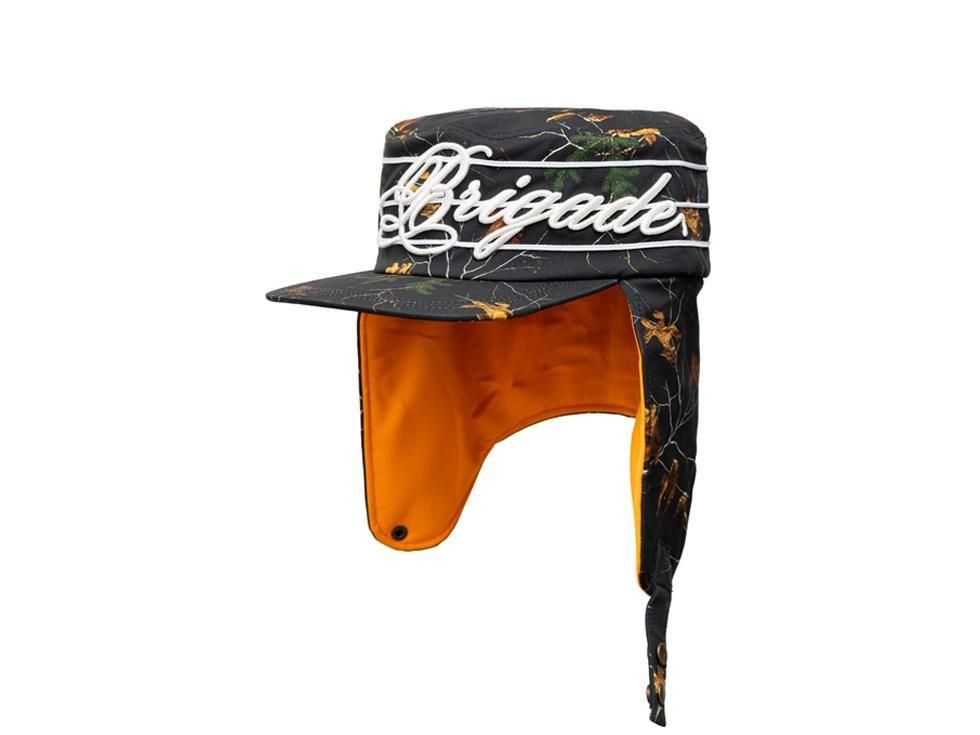 BRIGADE Ear Flap Script Pillbox Hat LEAF CAMO